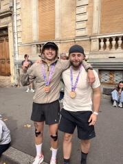 Ils étaient sans doute des dizaines, des dizaines de Commingeois à s’aligner au départ du marathon de Toulouse, ce dimanche parmi les 37 000 concurrents inscrits, un défi incroyable pour beaucoup d’entre eux : souffrir pour finir avec le sourire. Quentin Hoarau et Adel Ould-Mouloud étaient de ceux là. Quentin et Adel sont de gentils garçons. A 25 ans, l’âge insouciant aidant, on est porté à faire la fête et peu s’en privent. Mais, il y a six mois, en mai, Quentin jusque là peu enclin aux activités sportives, est pris de douleur. Sa main gauche se paralyse, sa jambe droite est douloureuse et l’empêche de marcher. Les examens médicaux seront formels et déconcertants, Quentin souffre d’une sclérose en plaques. Le neurologue lui administre des corticoïdes et lui suggère de se dépenser physiquement. Métamorphose du jeune adulte. Quentin arrête de fumer, évite toute consommation d’alcool, s’astreint à une meilleure diététique alimentaire et s’achète une raquette de tennis. Ses amis le soutiennent, partagent avec lui les activités physiques. Parmi eux, Adel lui suggère cet été de courir le marathon de Toulouse, bien plus qu’une gageure, un véritable défi. Dès lors, les deux potes se motivent et concoctent un plan d’entraînement. Ils se font conseiller par des coureurs avertis, ils multiplient les sorties longues de footing. Dimanche, l’un et l’autre ont participé à leur premier marathon. Bien sûr, ils n’ont pas eu l’allure des cadors. L’objectif avancé de boucler les 42,2km en 4h15 a même été revu à la baisse. « On a suivi le ballon des 4h30 jusqu’au 25ème kilomètre, confie Quentin, les genoux encore strappés. Puis il nous a lâchés. C’est incroyable de réaliser comment on a pu terminer, rien qu’au mental…. J’ai réduit mon allure, je n’ai même pas marché. » Quentin terminera l’épreuve en 4h40. Quant à Adel, il souffrira plus que son acolyte. Au trentième kilomètre, il a dû s’arrêter une première fois, impacté par les douleurs que lui occasionnent ses chaussures. « J’ai dû m’arrêter, trois ou quatre fois, me déchausser… Je ne reconnaissais plus ma foulée. » 5h17 à l’arrivée mais l’essentiel n’est il pas gagné ? Bravo.